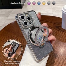 For iPhone 16 Pro Max 15 14 13 12 Liquid Flowing Round kickstand Diamond Case