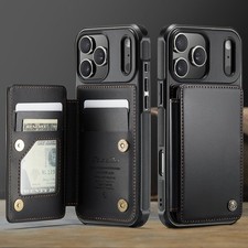 CaseMe For iPhone 11 12 13 14 15 16 17e Magnetic Leather Wallet Case Flip Cover