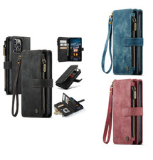 For iPhone 11 12 13 14 15 16 CaseMe Zipper Leather Wallet Detachable Cover Case
