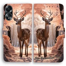 Personalised Text Wallet Phone Cover For OPPO Series - Deer in Snow Forest