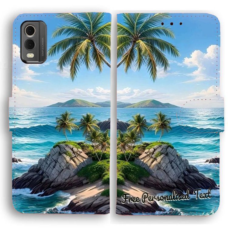 Personalised Text Wallet Phone Cover For HMD Series - Beach Tropical Island