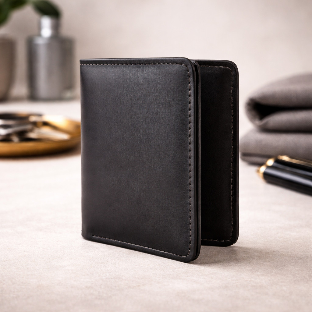 Digital Image Men’s Genuine Leather Wallet Black Bifold Slim Card Holder