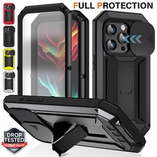 Heavy Duty Shockproof Metal Case Screen Protector + Stand for iPhone 17 16 15 14