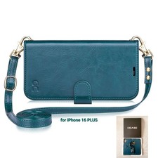 OCASE Crossbody Wallet Case for iPhone 16 PLUS Adjustabl Strap RFID Peacock Blue