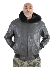 Men genuine Lambskin Alligator crocodile Pattern leather Fur Hood Jacket