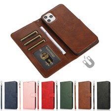 Removable Wallet Case Leather Flip Cover for iPhone 16e/15/14/13/12/11 XR SE 8