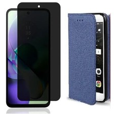 Case For Motorola Moto G35 5G Navy Blue + Tempered Glass Anti Spying - Cover